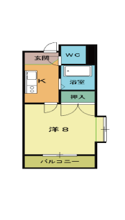 | 間取り | 1K (洋8) | ||||||||