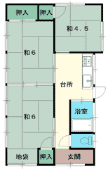 | 間取り | 3DK(和6×2・和4.5・DK) | ||